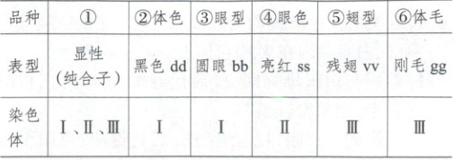 2. 下表为果蝇 6 个纯合品种的表型、相应的基因型(字母表示)及所在的染色体。品种②~⑥均只有一个性状是隐性纯合的,其他性状均为显性纯合。下列有关说法错误的是(