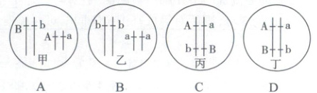 根据上述实验判断,以下关于甲、乙、丙、丁四个亲本的基因在染色体上的分布情况,正确的是(