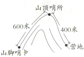 2. 一名战士从营地出发前往山顶哨所和山脚哨卡送装备,往返一次共行多少千米?(5 分)