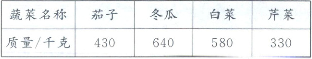 4. 地域特色 山东省寿光市是“中国蔬菜之乡”,拥有全国最大的蔬菜批发市场。寿光蔬菜批发市场运出一批蔬菜(如下表),如果用一辆载质量为 1 吨的小货车运送,不能同时运送(