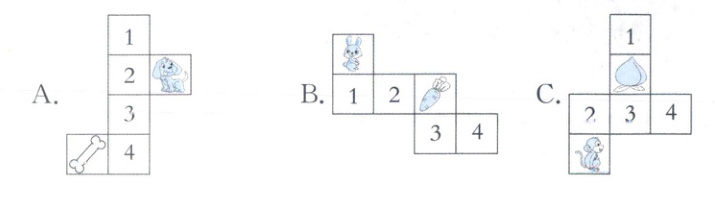 5. 在下面的正方体展开图中,动物和它喜欢的食物不在相对面上的是(