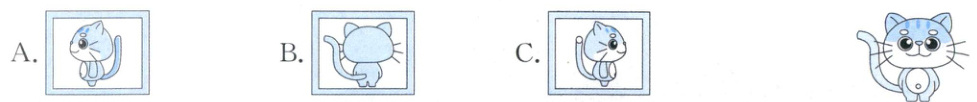 4. 三位小朋友站在不同位置上同时给小猫(右图)拍了一些照片,下面照片(
