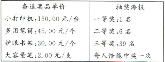 )名同学。(2)如果选择小打印机作为一等奖奖品,那么二等奖应选择(