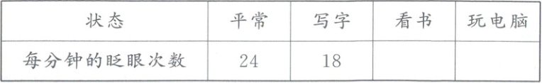 8. 科普常识 眨眼次数过少对眼睛的健康不利。请根据给出的信息完成表格。