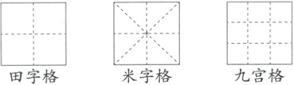 3. 练习书法。如图所示,常用的习字格有田字格、米字格、九宫格等。(格中的虚线一般被称为辅助线)