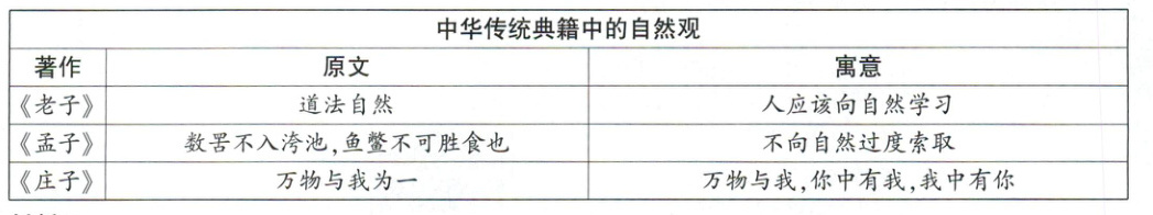 1. ◎新考法 开放性、综合性 根据材料一的自然观,用一句话概括材料二给我们的启示。(2 分)