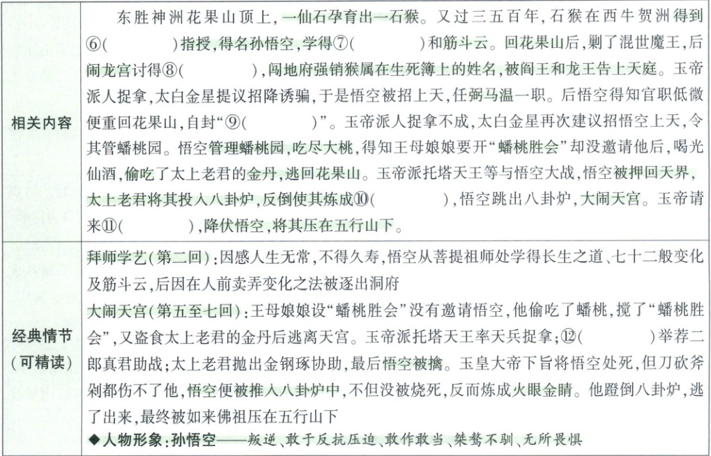 ⑥菩提祖师 ⑦七十二般变化 ⑧如意金箍棒 ⑨齐天大圣 ⑩火眼金睛 ⑪如来佛祖 ⑫观音菩萨