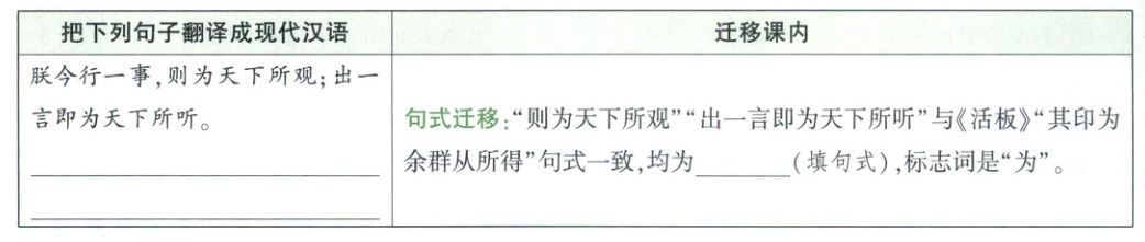 任务二:(2分)我如今(每)做一件事,就会被天下人所看到;(每)说一句话就会被天下人所听到。(意思对即可)