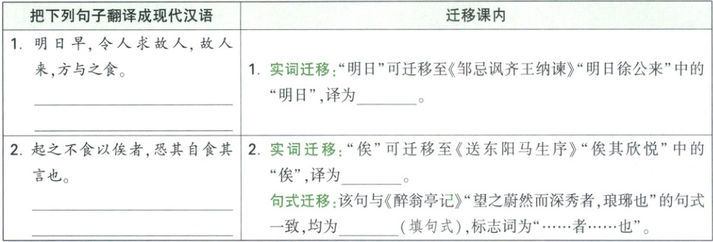 1. 翻译:第二天早晨,(吴起)派人去找老朋友,老朋友来了,才同他一起吃饭。