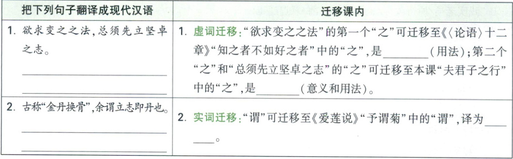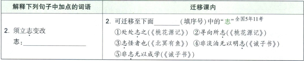 (教材“思考探究”三题改编)写出文中提到“志”的语句,联系上下文,说说你对文中“志”与“学”的关系是如何理解的。