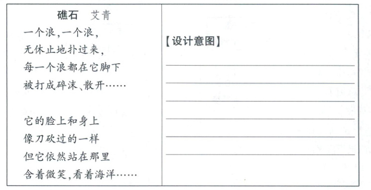 5. ◀新考法 关联阅读▶在“名著人物”主题雕像馆内,艾青的小诗《礁石》被镌刻于简·爱雕像的底座上。请你从设计者角度,结合诗歌意象和简·爱的人生经历阐释其设计意图。(6分)