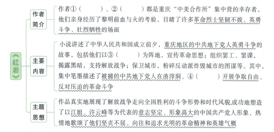 5.(6分)示例:艾青诗中的“礁石”任凭“无休止”的“海浪”吹打,依然“含着微笑”,毫不畏惧。“海浪”象征着生活中的困难和挑战,“礁石”象征着那些在困难和压力面前不屈不挠、勇敢面对的人或精神。简·爱自幼父母双亡,寄人篱下,又在寄宿学校艰难成长,虽历经苦难,饱受挫折,但她如诗歌中的“礁石”般坚忍顽强、敢于抗争,从不向命运低头。