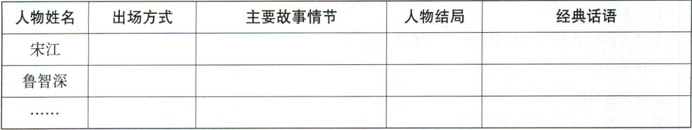 9. (2025 定心卷)下面是《水浒传》中主要英雄的人生历程梳理表,为了更好地完成表格,你建议使用哪些阅读方法(或策略)重读整本书?请简述理由。(3分)