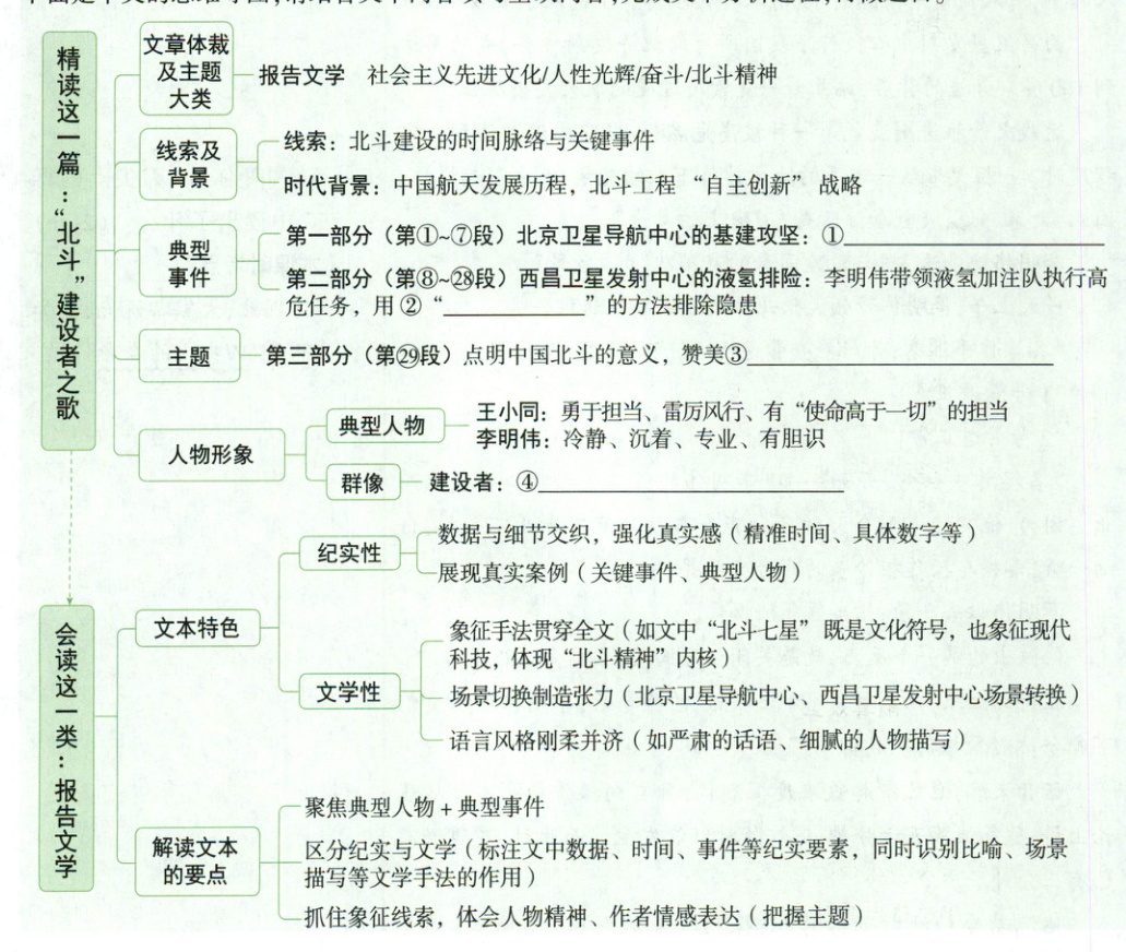 下面是本文的思维导图,请结合文本内容填写空缺内容,完成文本分析过程,再做题目。