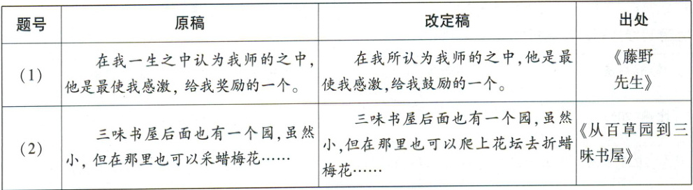 2. (2022河北)鲁迅先生是修改文章的典范。比较下面的原稿和改定稿,谈谈这些修改好在哪里。(6分)