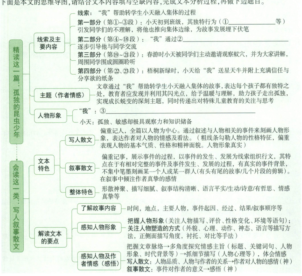 对接教材:同内容·八上“名著导读”《昆虫记》/同单元人文主题·九上第四单元“少年成长”
