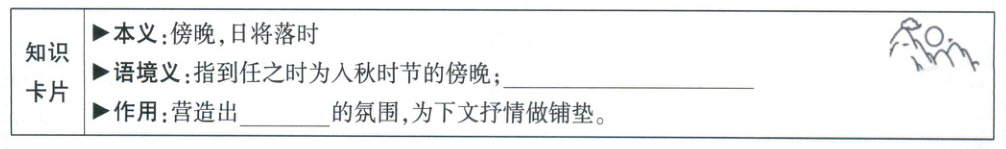 1. 新考法 答题支架 下面是小冀为“可怜薄暮宦游子”中“薄暮”这一意象做的知识卡片,请你帮忙补充完善。(3分)