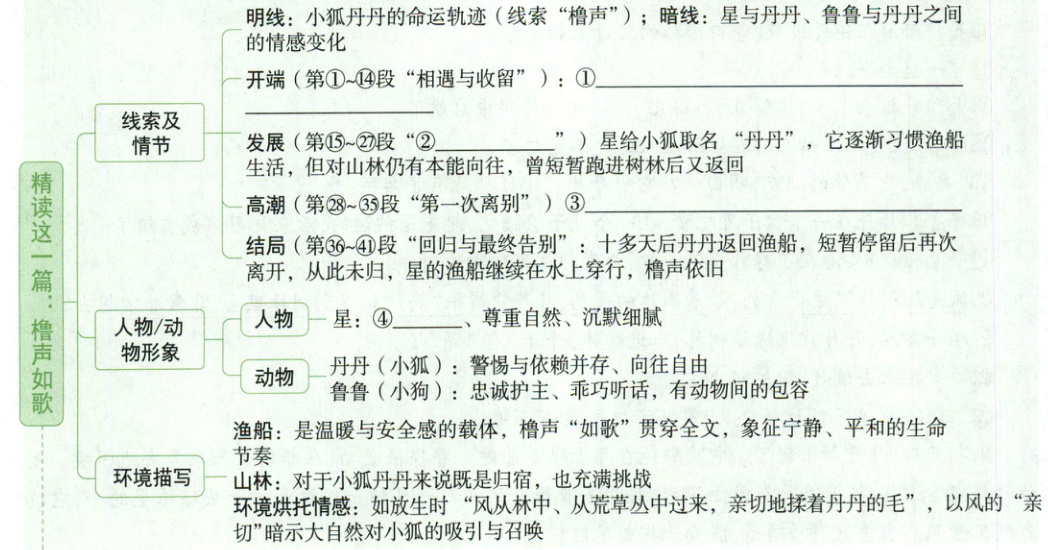 下面是本文的思维导图,请结合文本内容填写空缺内容,完成文本分析过程,再做边题目。