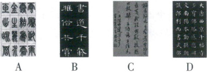 3.(2025黑白卷)下面是小冀同学找到的四幅书法作品,你认为最符合“端正挺拔、遒劲秀美”这一特点的作品是(2分)……【 】