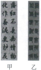 示例二:选择乙图,乙图为篆书作品。篆书厚重古朴,与《己亥杂诗》(其五)中诗人深厚的爱国之情更加相配。(言之成理即可)