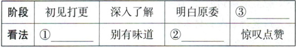 5.“我”对老程打更的看法不断发生着变化,根据文章内容填写表格。(3分)[考点:人物心理变化]