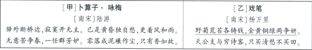 2. 新考法 答题支架 甲词、乙诗都显示作者处在“穷”境,请参考词典解释,指出他们主要是哪种“穷”。诗词各体现出作者面对“穷”境时怎样的精神?(4分)