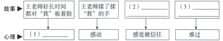 1.请梳理王老师和“我”之间发生的故事及“我”的心理变化,完成下表。(3 分)【考点:】