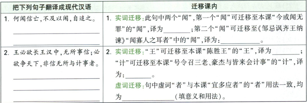 (二)1.燕雀怎么知道鸿鹄的志向呢!2.王侯将相难道有天生的贵种吗?