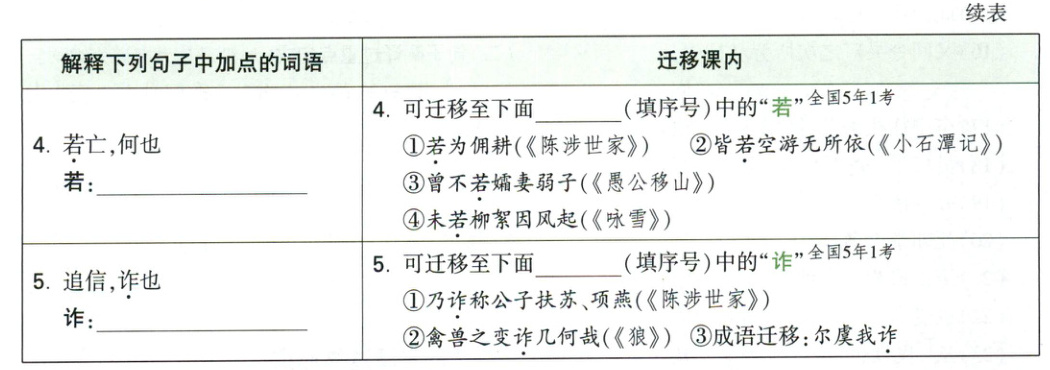 5. 诈:欺骗;可迁移至①③中的“诈”。