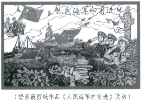(据苏霞剪纸作品《人民海军向前进》改动)