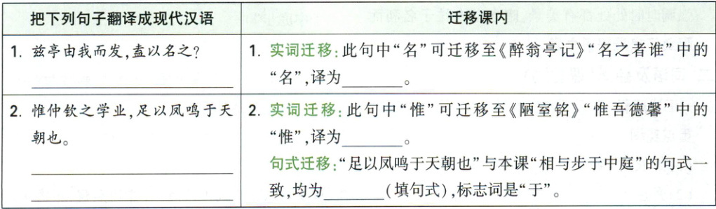 1. 这个亭子因为我而发起建造,为什么不用(我的)名字给它命名呢?;“名”译为“命名”