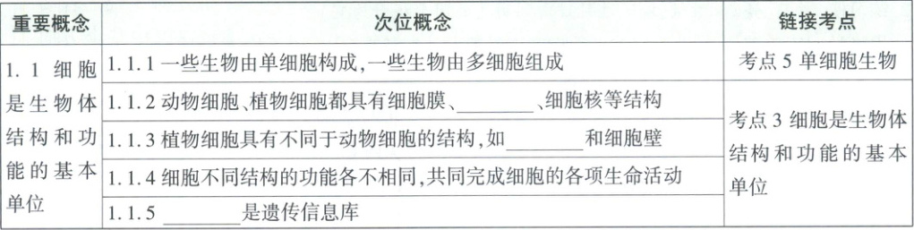 1.1 细胞是生物体结构和功能的基本单位(1分)