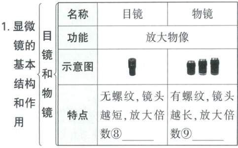 4. 显微镜的成像特点:从显微镜内看到的是上下颠倒、左右翻转的物像,即与玻片上的实物相比,上下、左右均㉗