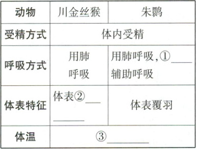 (2) 新考法 比较法 川金丝猴和朱鹮的特征比较如下: