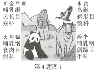 (1)图 1 中最大分类单位是。“秦岭四宝”中与其他三种动物亲缘关系最远的是。