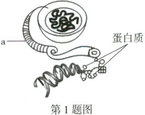 1. (2024 河北 20 题)同学们用 3D 打印技术制作了表示细胞核、染色体、DNA 和基因关系的模型,如图所示。其中 a 表示的是 (