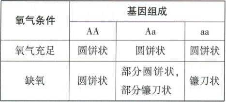 。(2)在不同的氧气条件下,基因组成为 aa 个体的红细胞形态不同。这说明红细胞形态是由基因组成和