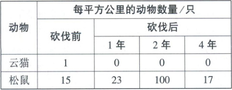 (2)[原因分析]根据表格数据分析,砍伐后的 4 年内,该森林中松鼠的数量变化趋势是先增加后