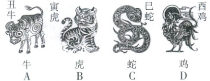 7. (2024河北3题)河北武强木版年画是国家级非物质文化遗产。下列年画作品表示的四种动物中,体温不恒定的是(