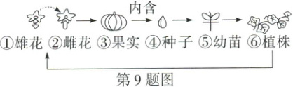 9. (2025 安阳)南瓜可以补充气血,健脾养胃。如图表示南瓜生长发育过程,下列说法正确的是 (