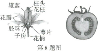 8. (2025 苏州)番茄是一种常见食材,它的花和果实如图所示。下列相关叙述错误的是 (