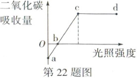 22. 某同学在探究不同光照强度对吊兰生理作用的影响时,记录二氧化碳吸收量的相关数据如图所示。图中能够表示有机物开始积累的点是(