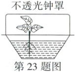 23. 小冀将图示装置放置在黑暗环境中一昼夜,然后取下不透光钟罩将其放到阳光下8小时,最后取叶片进行脱色处理、滴加碘液,结果叶片变蓝,这一实验说明该植株(