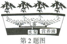 2. (2025 苏州)气雾栽培是利用喷雾装置将营养液雾化后直接喷到植物根系的一种无土栽培技术,如图所示。根系直接与空气接触,有利于植物的根进行(