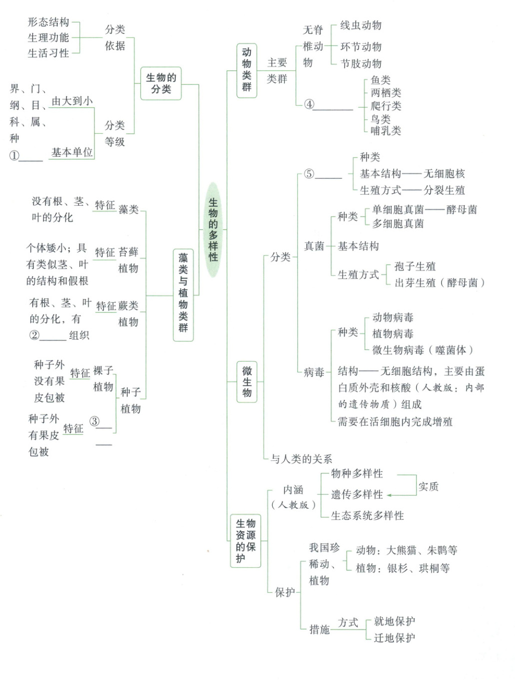 ①种 ②输导 ③被子植物 ④脊椎动物 ⑤细菌