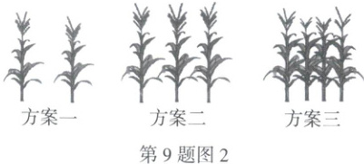 (4)图2表示种植玉米的三种方案,为充分利用土地单位面积上的光照,科学种植玉米应选择方案____。