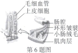 6. (2025 北京大兴区)如图为人体小肠结构模式图,下列相关叙述错误的是(