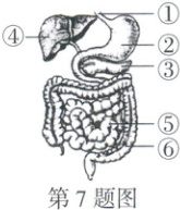 7. (2025 许昌)我们食用的各种食物在人体消化道中被消化吸收,最终被人体利用。如图为人体消化系统的部分结构示意图。下列相关说法错误的是(