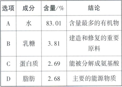 2. (2025 新疆)下面是生物学社团绘制的骆驼奶营养调查记录表,下列相关结论中正确的是(