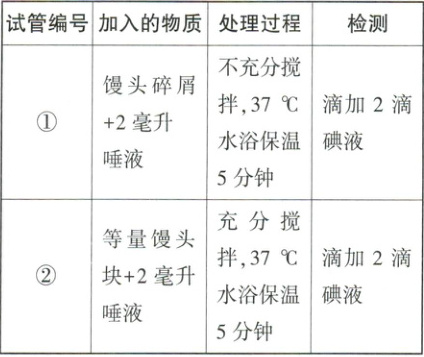 8. 万唯原创 新考法 方案评价与优化 某学习小组设计了如下表的实验方案探究“牙齿的咀嚼和舌的搅拌对馒头消化的影响”,请你指出其中设计不合理的有几处(